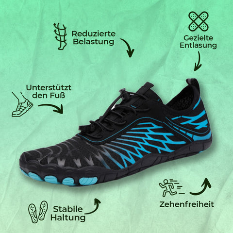 Široká špička zajišťuje, že každý prst je dostatečně pružný, aby našel sílu a oporu na zemi. To umožňuje nejsilnější a nejflexibilnější části těla, chodidlu, lépe podpírat celé tělo.