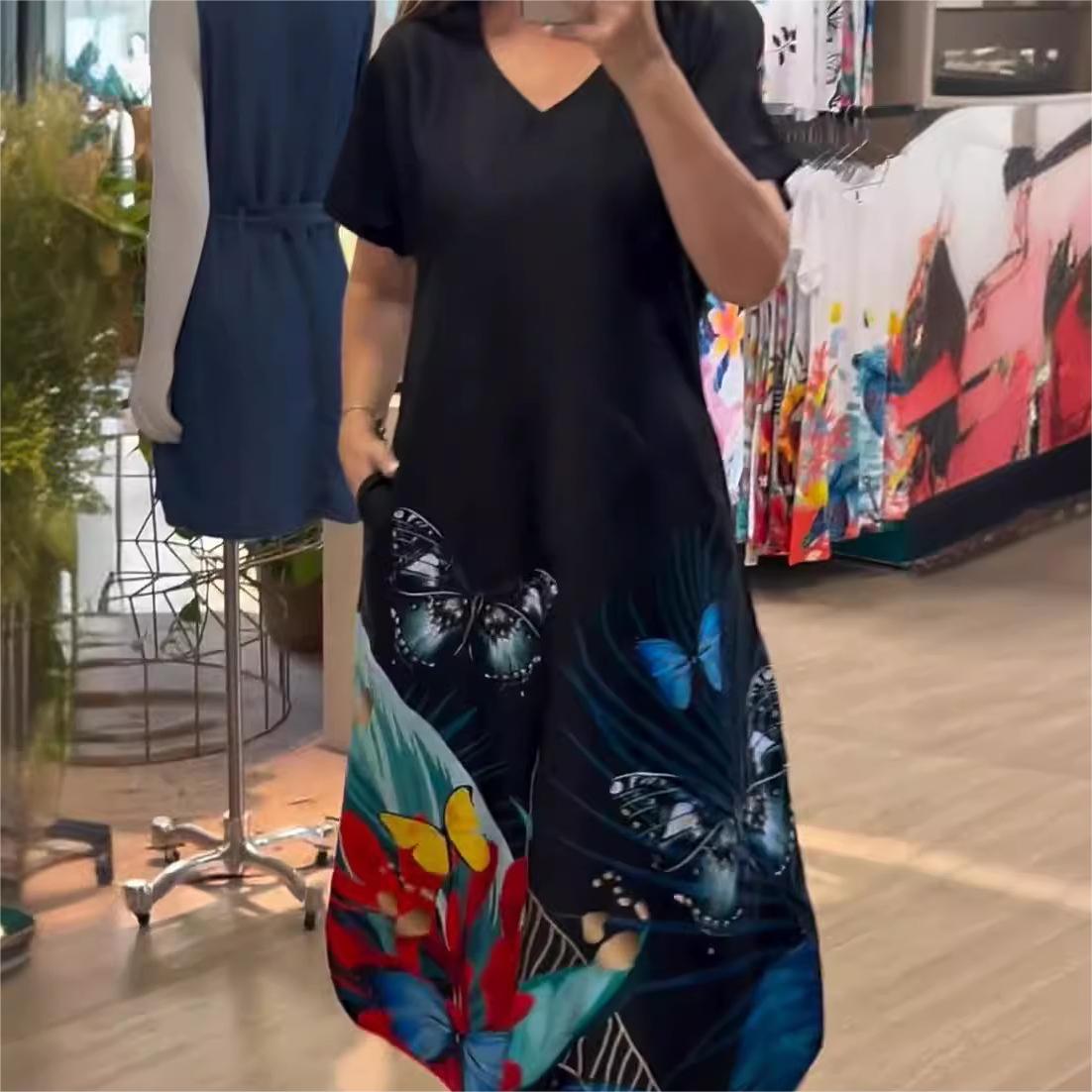 Balení obsahuje: 1 * Elegantní šaty s výstřihem do V a květinovými kapsami